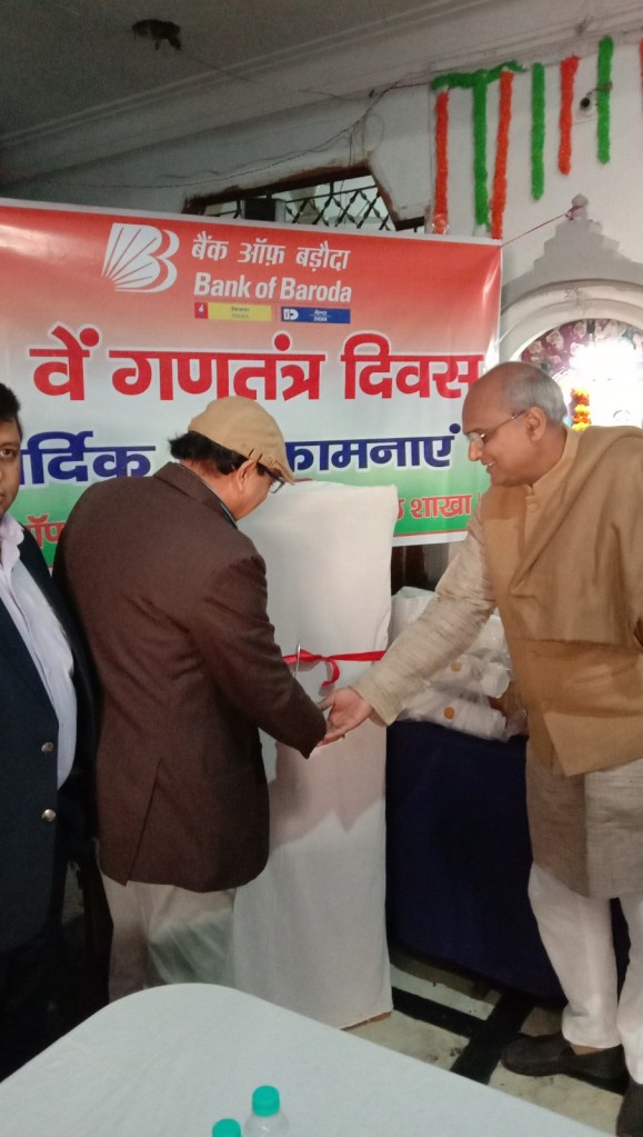 We were fortunate to have the senior management of Bank of Baroda with us for the celebration. On the occasion, Shri Raman Bajaj, AGM BOB and Shri A.K. Pandey, AGM BOB along with their team visited the school. They were gracious to give electrical appliances to the School as gifts. We are eternally thankful to them for their generosity. Shri Rakesh Manik, DGM BOB was also scheduled to come but there was a change in his plan at the last minute.