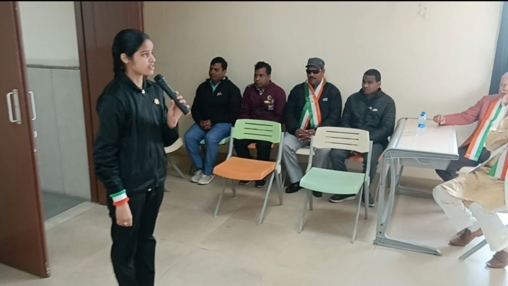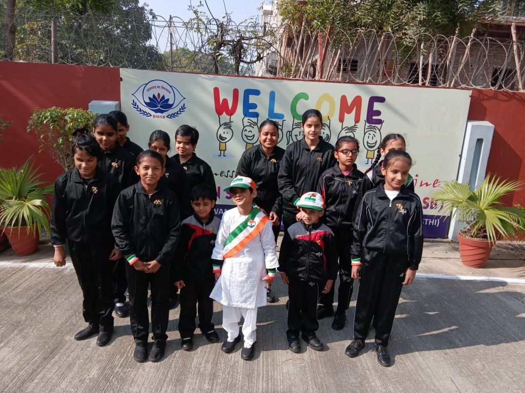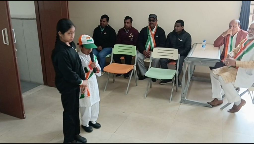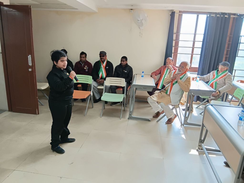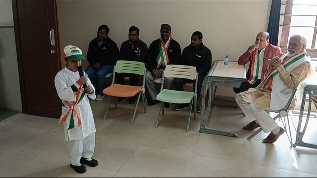 Today, on the occasion of the 77th Republic Day, the flag was hoisted at Brijmohan School for the Blind by the chief guest, Architect Meenal Agarwal, President of the Meerut Architects Association. Following this, Ms. Rida, Ms. Lavi, and Ms. Swati presented a welcome song, Ms. Sumaiya and Ms. Anshika recited patriotic poems, Ms. Rida recited the Saptashloki Gita, and Ms. Sanjana presented a patriotic song, captivating all the guests.