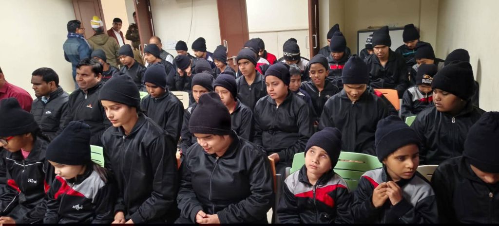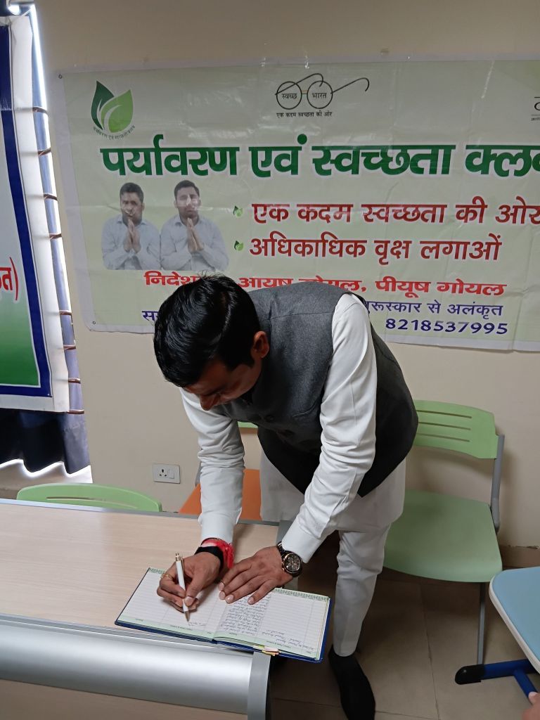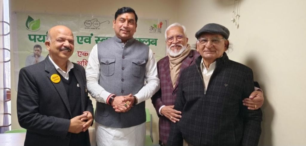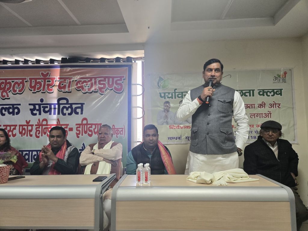 Today on 30.01.26, the ninth foundation day of Environment and Cleanliness Club was celebrated in Brijmohan School for the Blind in an emotional atmosphere by cutting the cake with visually impaired children by the Director of the organization Ayush and Piyush Goyal ji. After this, Miss Rida recited shlokas and Miss Sanjana mesmerized the guests by presenting a very beautiful song. The chief guest of the program was the Minister of State for Energy, Government of Uttar Pradesh, respected Dr. Somendra Tomar ji, very special guest was former MP Rajendra Agarwal ji, special guest was President IMA Dr. Manisha Tyagi ji, famous dietician Dr. Bhavana Gandhi ji.