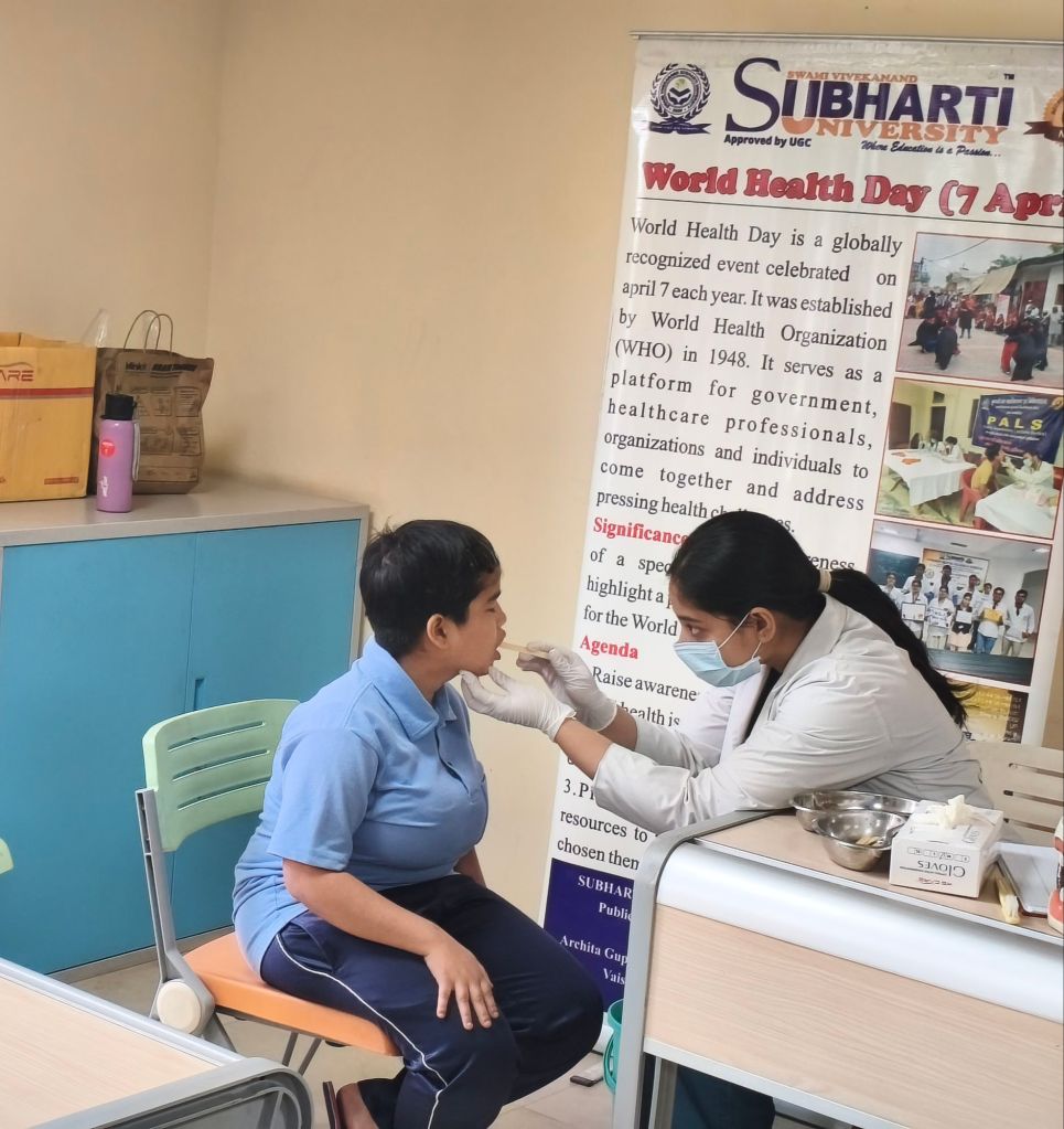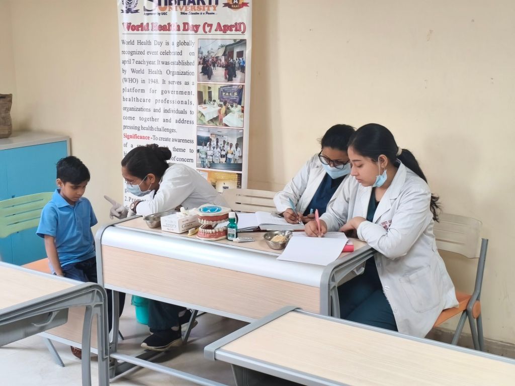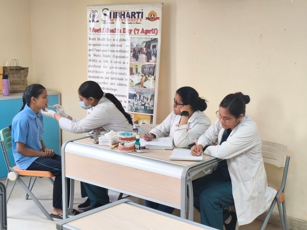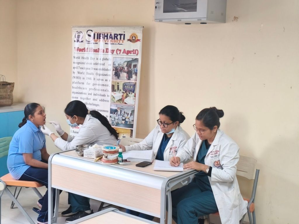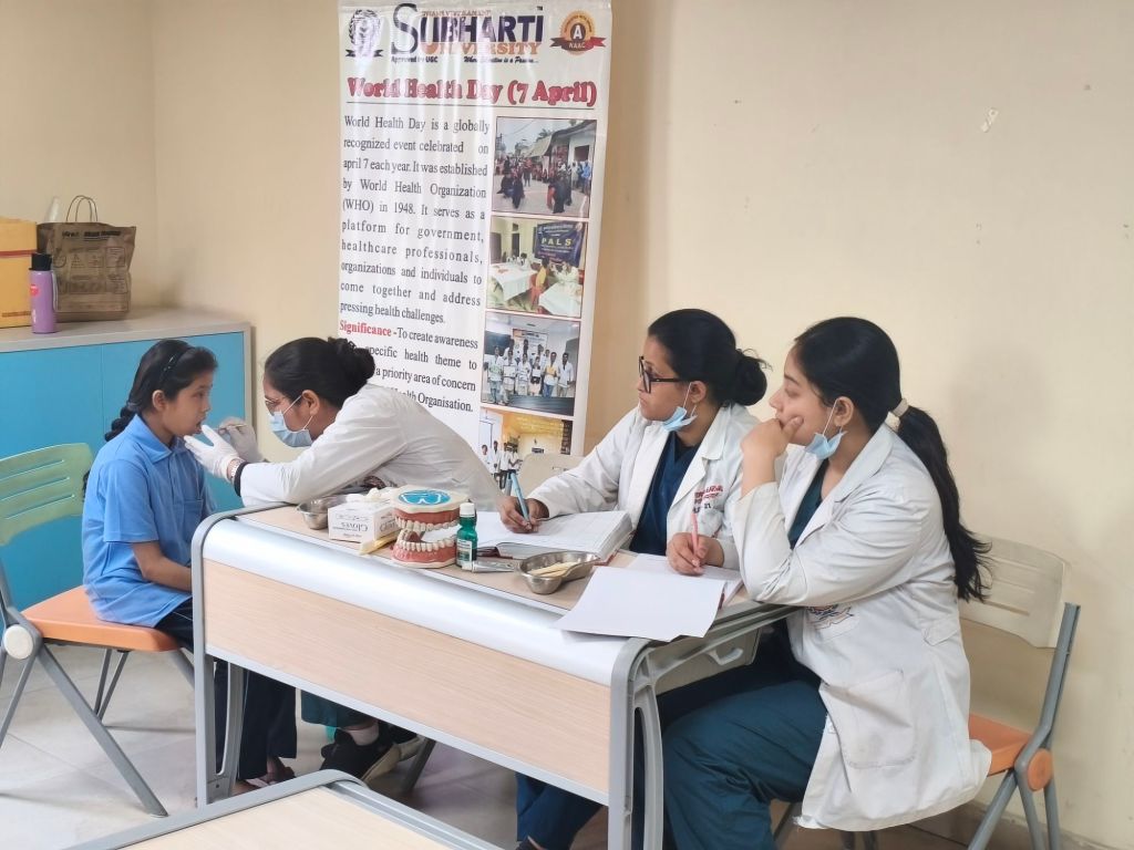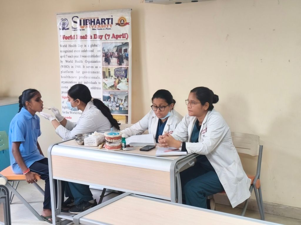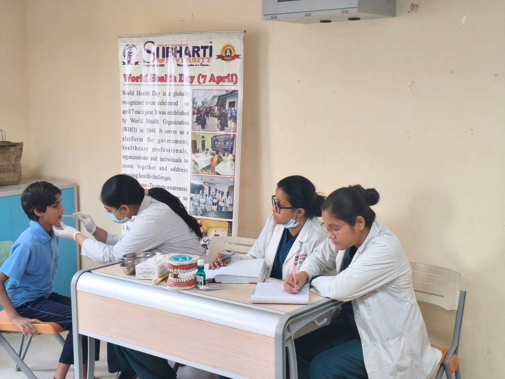 On 8.4.26, on the occasion of World Health Day, a free dental camp was organised by Subharti University, Meerut at Brijmohan School for the Blind.